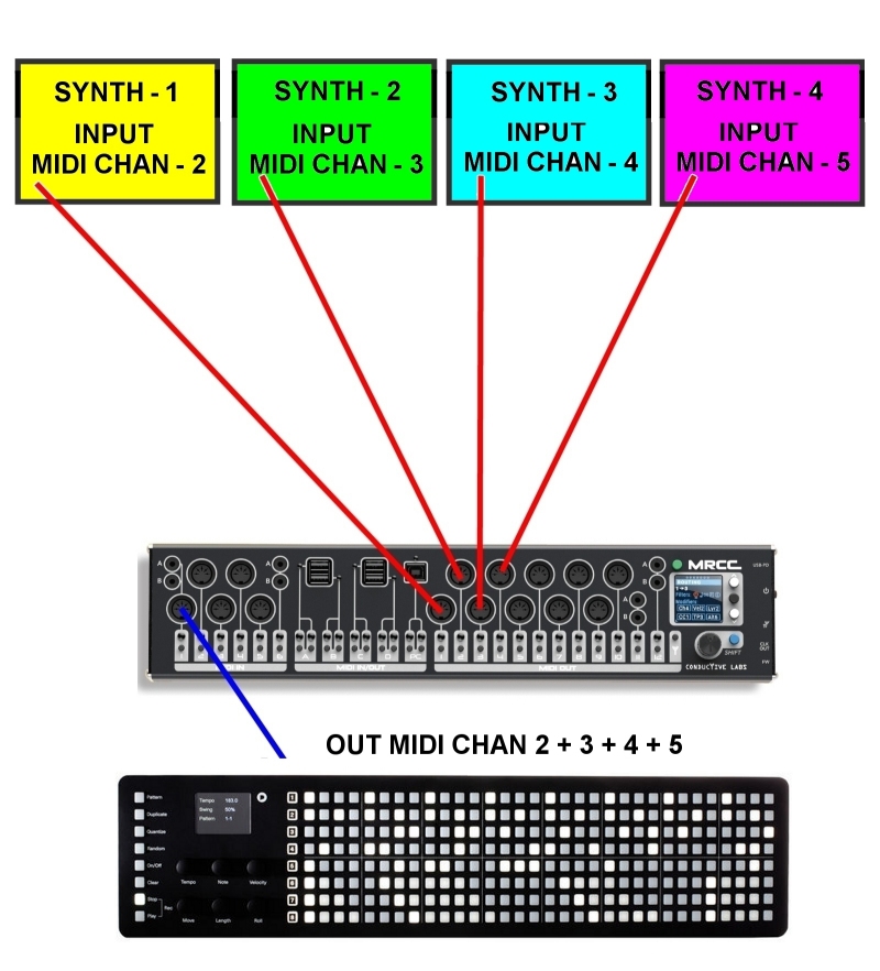 MRCC MID DIN INPUT -1   have a keybord / Sequencer and all my SYNT use differ midi channel input like this: