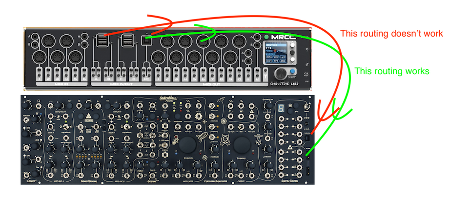 When I connect it to usb from mrcc, everything works (gate, midi cc’s etc) except for pitch