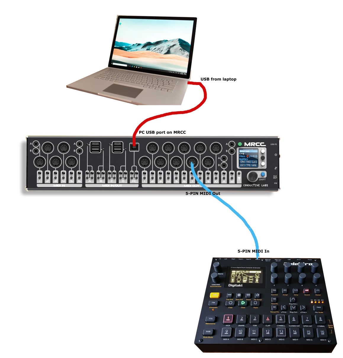 Please see screenshot, it's a visual describing my cable setup and the path of the SYSEX file to the Digi*.