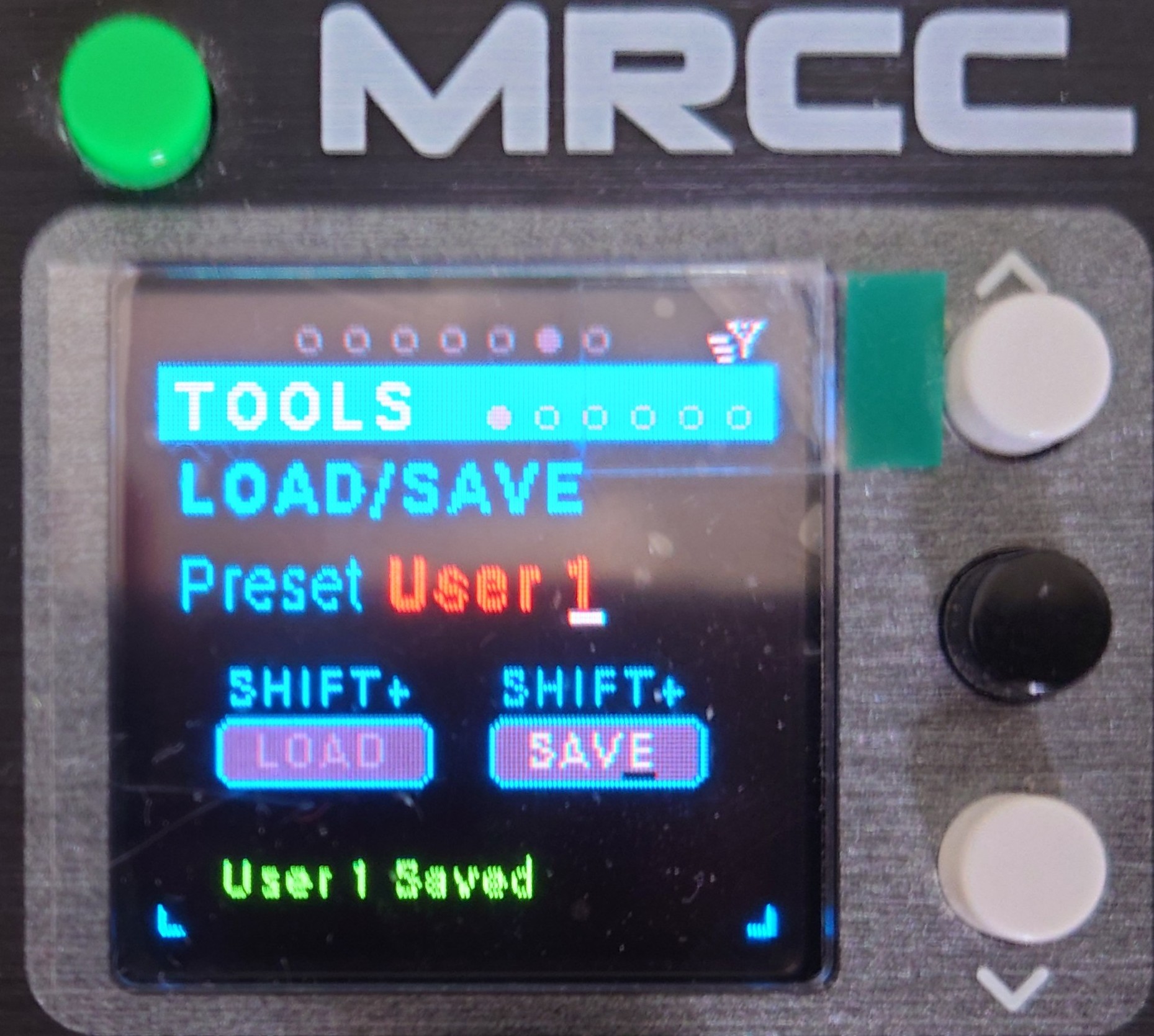 I've got my MRCC recently and used hours of configuring labels and the correct routing between USB and 5 DIN ports over the R7 modul. But I'm facing the problem that saving over an existing presets sometimes don't work. It say "User 1 saved" but in the same turn the preset name itself turns from green to red. It also doesn't help to save to another preset slot. All become red and when turning off and on all my work are gone. What a PITA!!! I already replaced the microSD but that doesn't help. FW is 1.1.052, so it's up to date. Any ideas?
